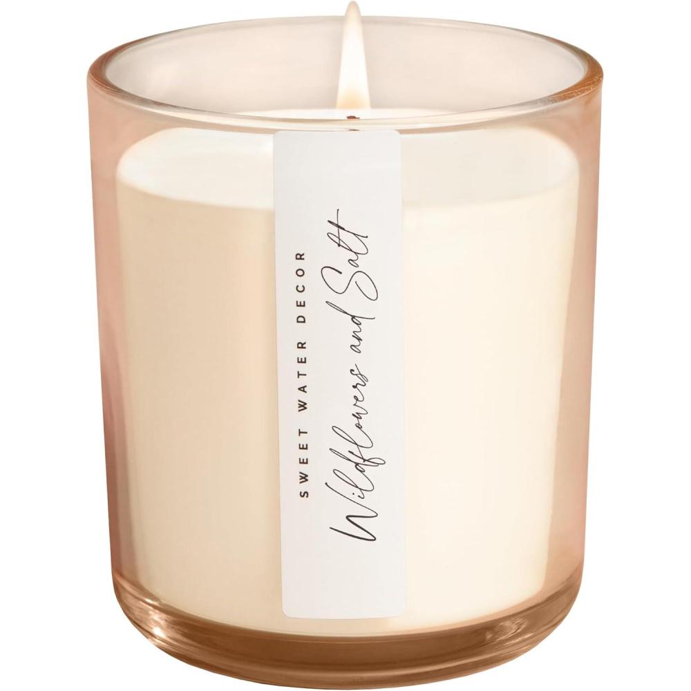Sweet Water Decor Christmas Candle – Cinnamon, Trees, Orange, and Clove Scented Winter Candle – Christmas Soy Candles and Decor for Home – 12oz Sandstone Jar, 50+ Hour Burn Time, Made in The USA(Wildflowers and Salt)