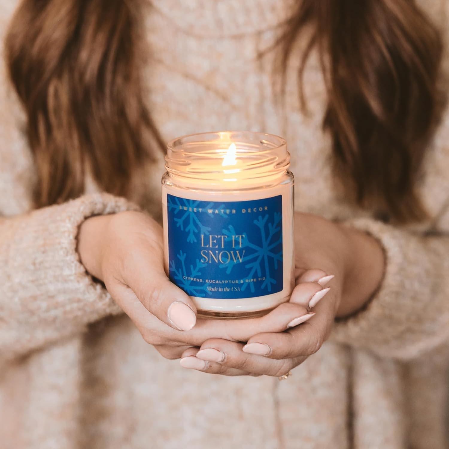 imageSweet Water Decor Christmas Tree Candle  Spruce Pine Needles and Evergreen Candles Scented Soy Candles for Home  Christmas Candle 9oz Clear Jar 40 Hour Burn Time Made in The USALet It Snow