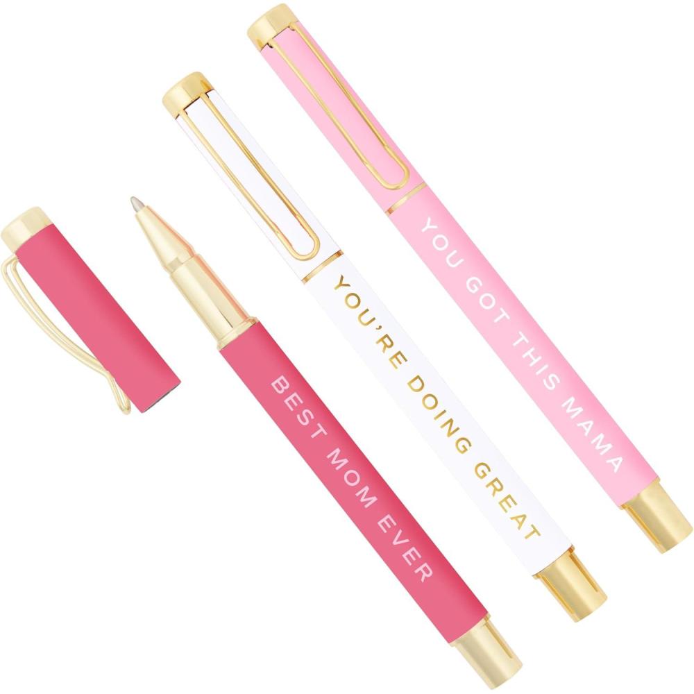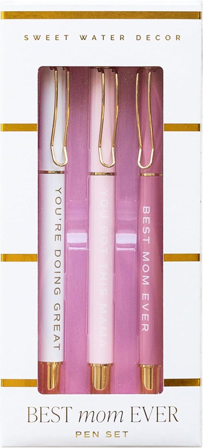 imageSweet Water Decor Mr and Mrs Wedding Pen Set 2 Piece Ballpoint Pens with Gold Accents Black and Grey Delft Design Medium Black Ink Perfect for Guest Book Engagement Bridal Shower Newlywed GiftBest Mom Ever Set