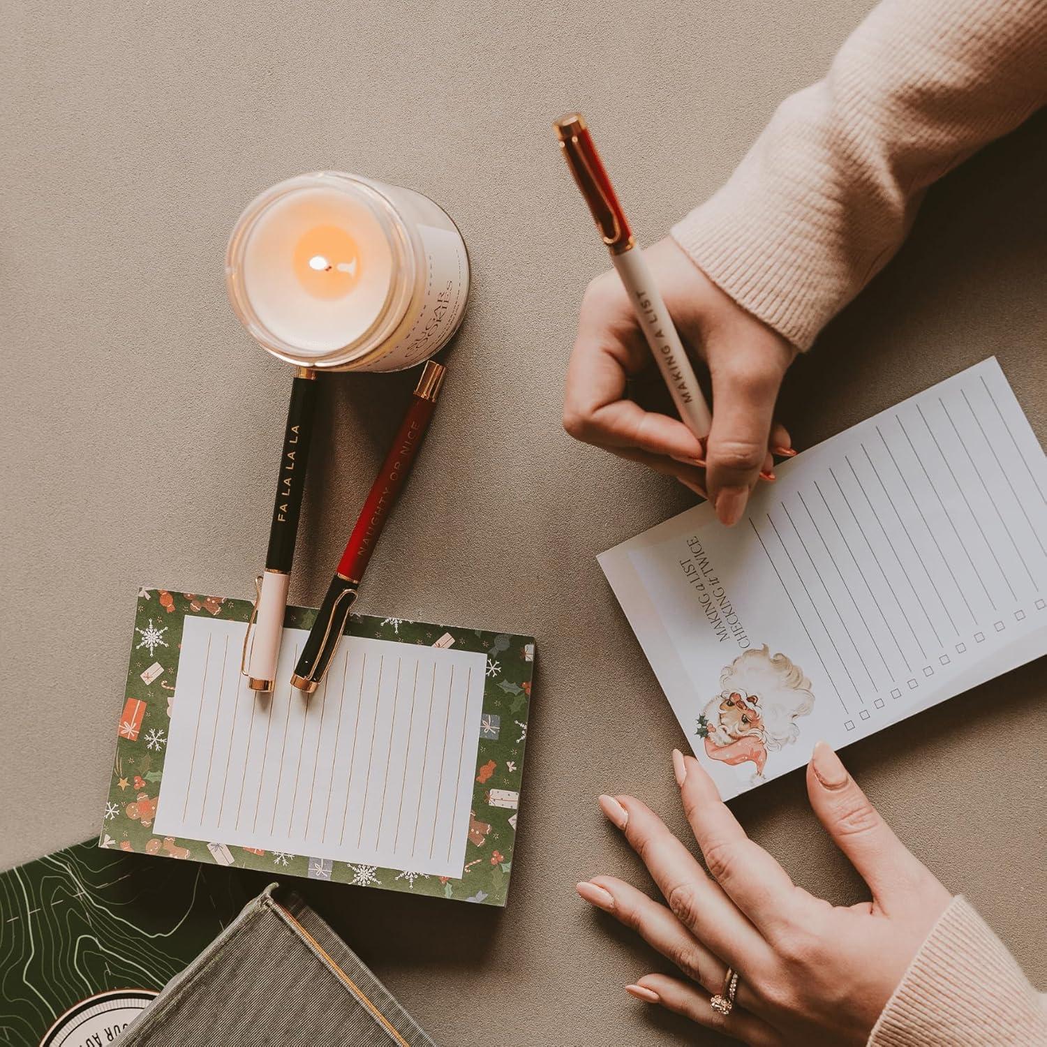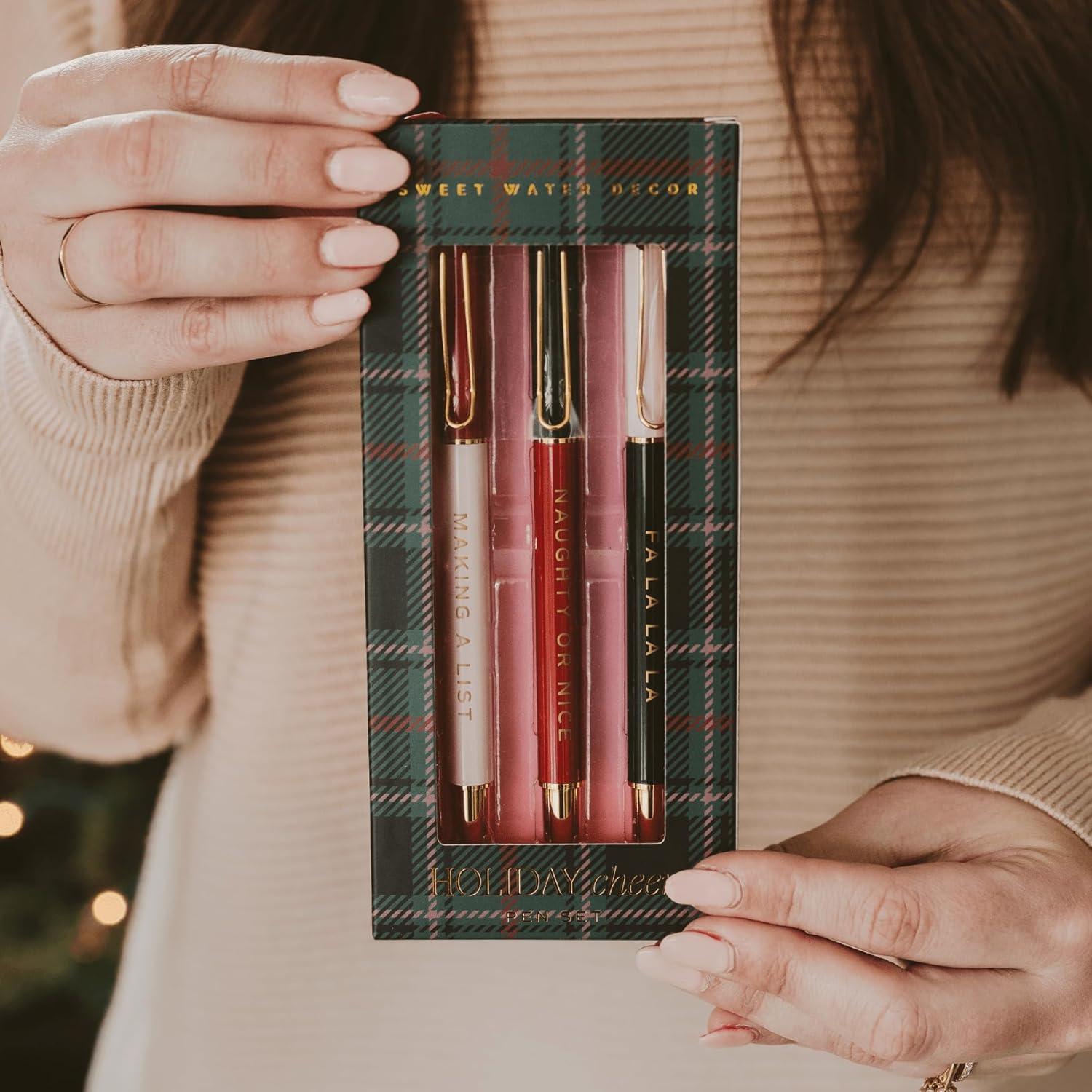 Sweet Water Decor Mr and Mrs Wedding Pen Set, 2 Piece Ballpoint Pens with Gold Accents, Black and Grey Delft Design, Medium Black Ink, Perfect for Guest Book, Engagement, Bridal Shower, Newlywed Gift(Holiday Cheer Set)