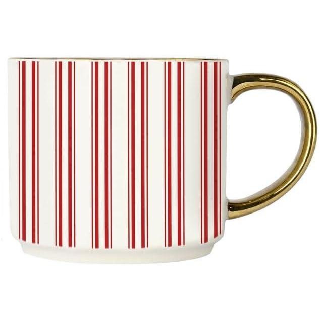 Sweet Water Decor Red Stripe Coffee Mug, 14oz China Christmas Mug with Gold Handle, Large Holiday Winter Cup for Coffee, Tea & Hot Chocolate, Stocking Stuffer Gifts for Women(Red Stripes)