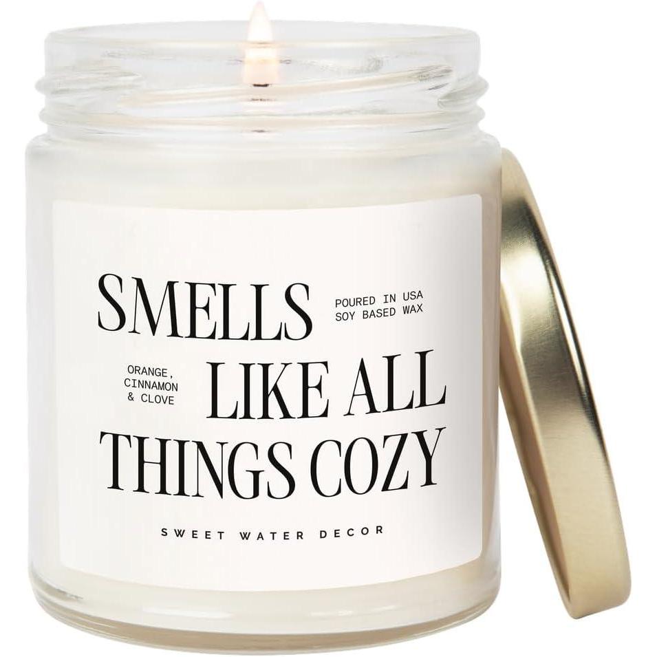 Sweet Water Decor Smells Like She’s Playing Mahjong Candle, Funny Mahjong Gift for Women, 9oz Candle with Gold Lid, Sea Salt Citrus Musk Amber Scent, Non-Toxic Soy Wax, Unique Game Night Gift Idea(Smells Like All Things Cozy)
