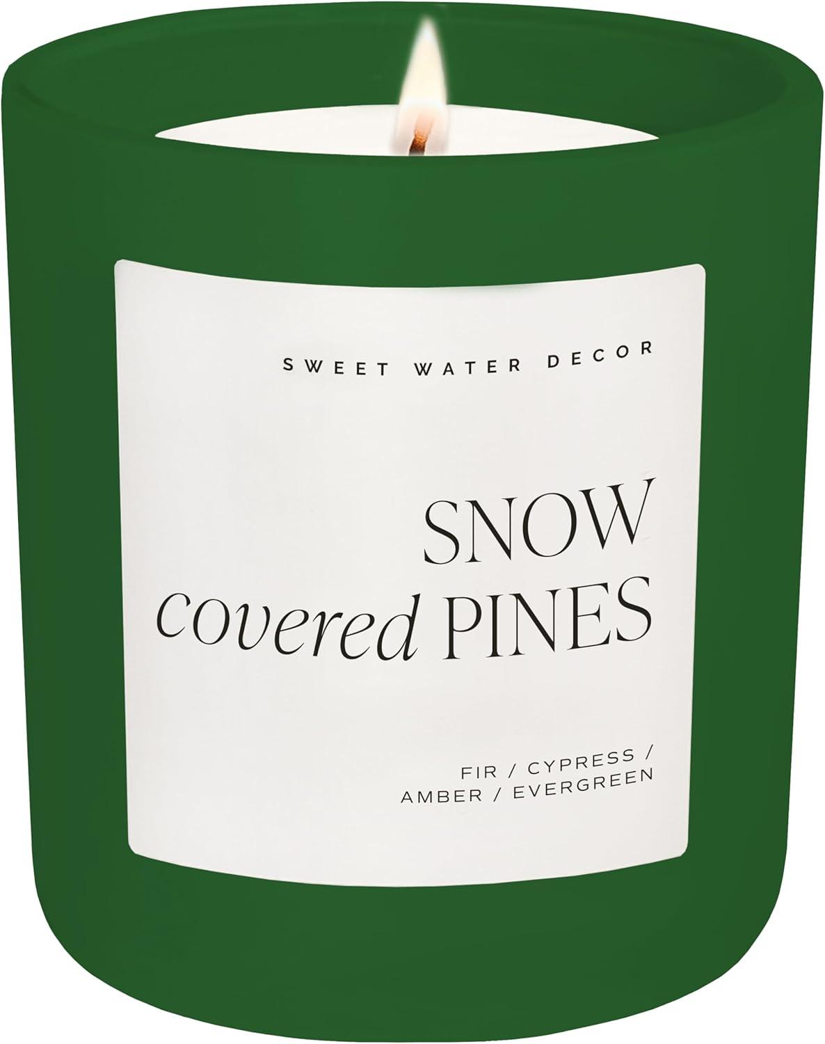 Sweet Water Decor Warm and Cozy Candle, Pine Cinnamon & Fir Scented Winter Candles for Home, Large 15oz Black Jar, 70+ Hour Burn Time, Non-Toxic Soy Blend Wax, Stocking Stuffer, Made in The USA(Green)